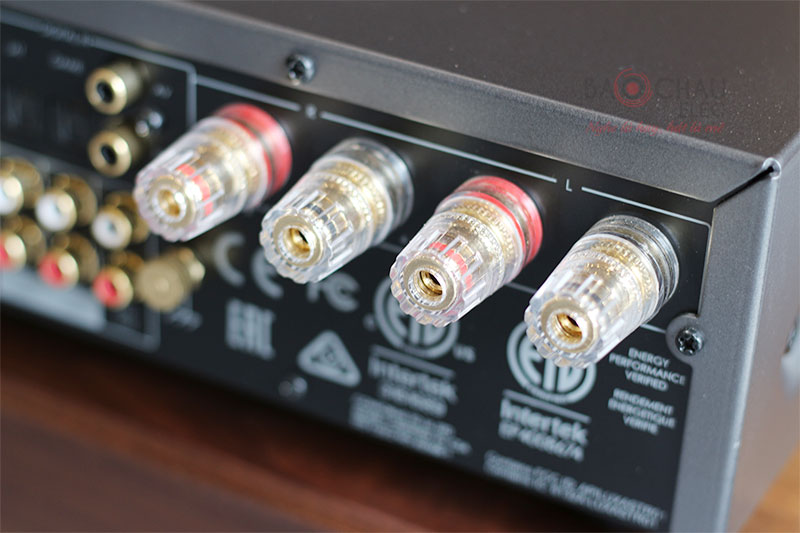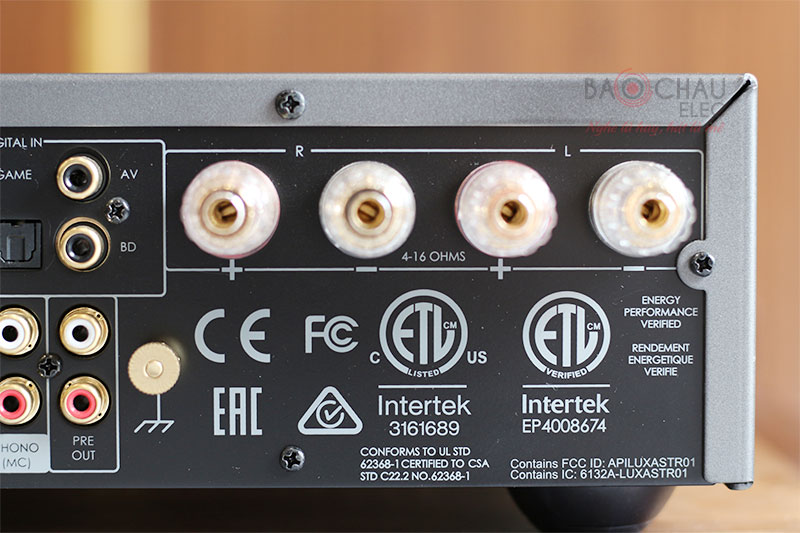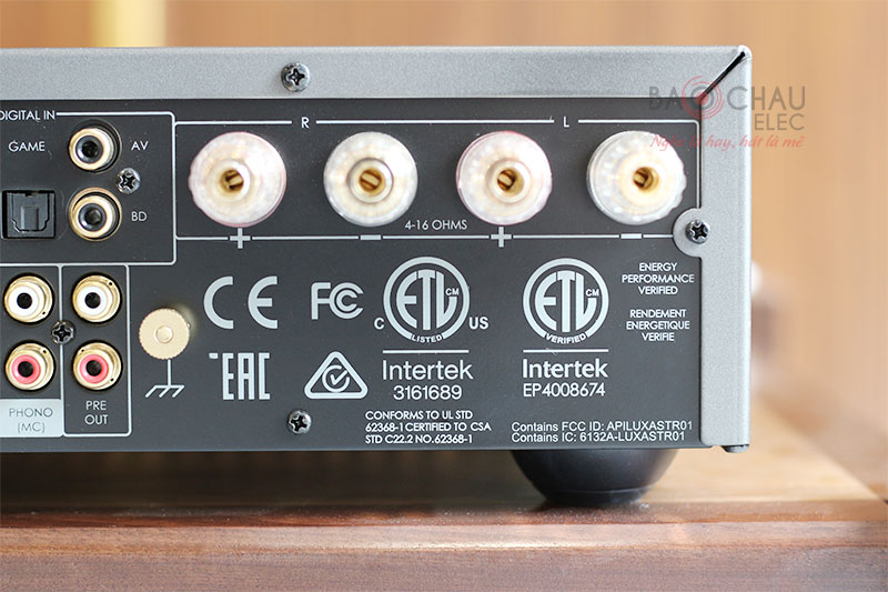 - Công suất 120W cho mỗi kênh thành 8Ω, 220W thành 4Ω