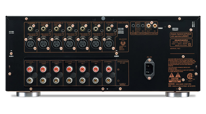 Cùng với khả năng được hỗ trợ kết nối IR-Flasher IN kiểm soát các thiết bị trong hệ thống xem phim, cùng với đó là khả năng kết nối với thiết bị thứ 3 trên IR-Flasher OUT thông qua IR-Emitter mang đến cho Power ampli Marantz MM8077 sự hoàn chỉnh và ổn định cho thiết bị.