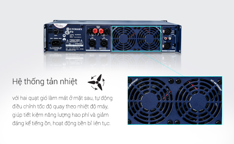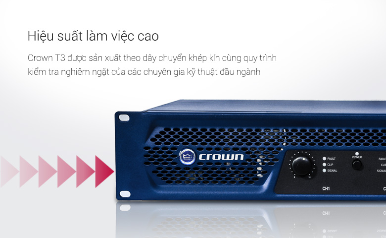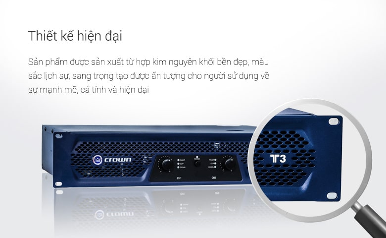 Cục đẩy 2 kênh Crown T3 khuếch đại công suất ở mức 300W RMS là một phần của dòng Crown T-series là một dòng của bộ khuếch đại sẽ nâng cao chất lượng các buổi hòa nhạc, trình diễn và các sự kiện lớn.