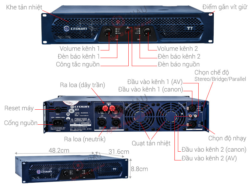 + Cục đẩy công suất Crown T7 (2 chiếc)