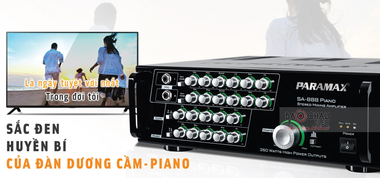 Paramax SA-888 Piano có công suất đầu 350W/ 2CH nên có thể dễ dàng kéo các cặp loa có mức công suất liên tục lên đến 175W mỗi loa.