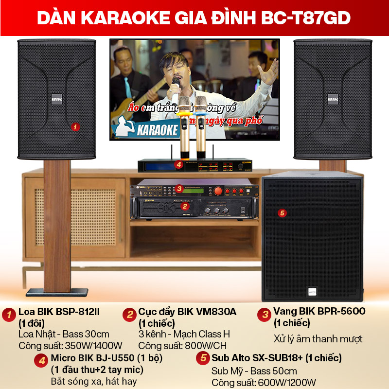 Cấu hình của dàn karaoke gia đình BC-T87GD bao gồm