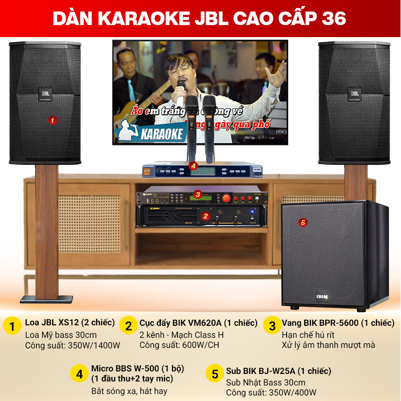Dàn karaoke JBL cao cấp 36 gồm các thiết bị
