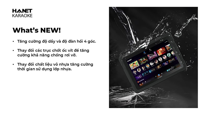 Đặc biệt, Hanet đã tăng cường độ dày với độ đàn hồi 4 góc cũng như hay đổi các trục chốt ốc vít của máy tính bảng Hanet này nhằm tăng cường khả năng chống rơi vỡ, chống thấm nước, đảm bảo độ bền và tuổi thọ của máy.