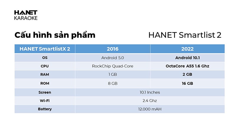 Nếu đã là người dùng quen thuộc của đầu karaoke Hanet thì chắc hẳn dòng sản phẩm Smart List không xa lạ với bạn. Máy tính bảng Hanet Smartlist 2 - một trong những sản phẩm công nghệ mới nhất của Hanet, cùng với đầu karaoke Hanet PlayX-2 đang tạo nên làn sóng thiết bị âm thanh karaoke mới trên thị trường Việt Nam. Sản phẩm hứa hẹn mang lại cho người dùng của Hanet những trải nghiệm sản phẩm mới tốt hơn, cao cấp hơn.