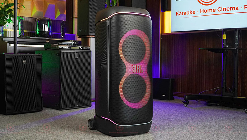 Với công suất RMS lên đến 800W, JBL PartyBox 720 mang đến âm thanh cực mạnh, đáp ứng tốt cả những không gian rộng hay các buổi tiệc ngoài trời. Công suất này không chỉ giúp âm lượng lớn mà còn duy trì độ ổn định, không bị méo tiếng khi bật tối đa.