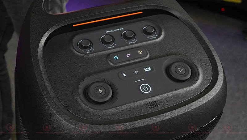 Bảng điều khiển của JBL PartyBox 720 cũng được thiết kế trực quan, dễ sử dụng và sắp xếp hợp lý, phù hợp với cả người mới làm quen lẫn những DJ chuyên nghiệp. Các nút chức năng và cổng kết nối được bố trí hợp lý, giúp việc điều chỉnh âm thanh, hiệu ứng đèn và các chế độ kết nối trở nên nhanh chóng, thuận tiện.