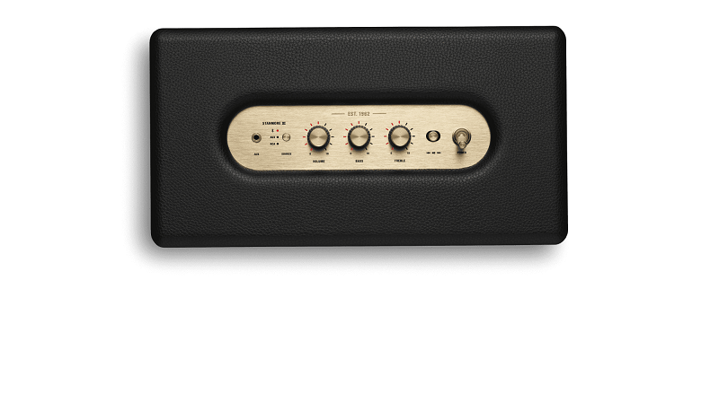 - Thiết kế đổi mới hiện đại trẻ trung, logo nổi Marshall và năm kỷ niệm 1962 mạ vàng in trực tiếp trên bảng điều khiển.