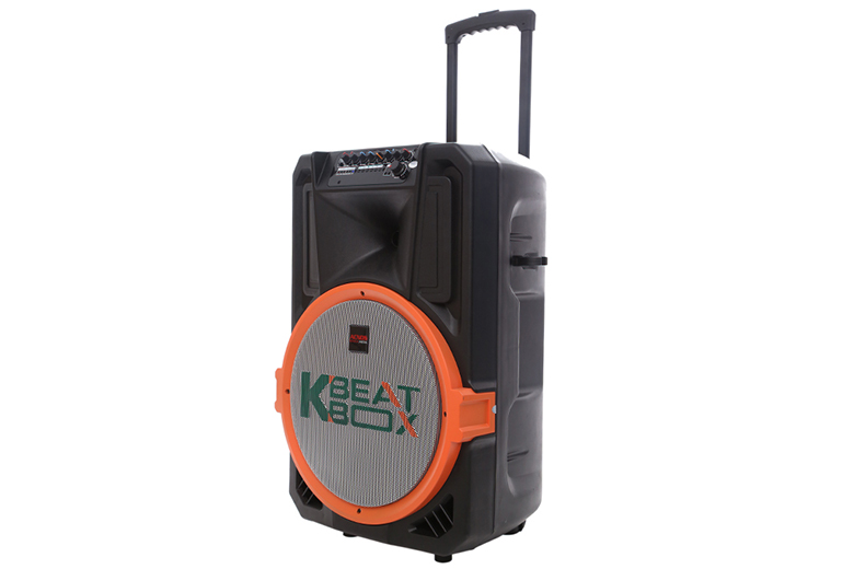 Mặt trước là lớp màng loa được thiết kế bằng kim loại với viền màu cam, bền bỉ, chắc chắn bảo vệ tối ưu củ loa bên trong hơn nữa lại vô cùng bắt mắt. Chữ KBEATBOX chính giữa mặt trước càng thu hút ánh nhìn và tạo sự độc đáo cho Loa kéo di động Acnos Beatbox KB39X