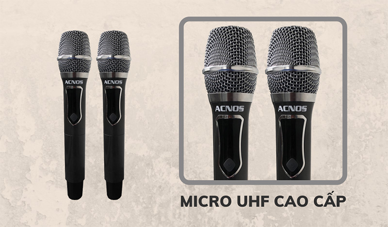 Được kèm theo 2 chiếc micro không dây với màu sắc hiện đại sang trọng. Micro được thiết kế gọn gàng, vật liệu nhôm cao cấp, củ micro hút tiếng cầm vừa và chắc tay cho bạn cảm giác thoải mái, dễ chịu nhất khi sử dụng. Độ nhạy cao, độ chống hú rít tốt cho bạn những âm thanh chân thực, rõ ràng giúp bạn có những giây phút giải trí trọn vẹn.