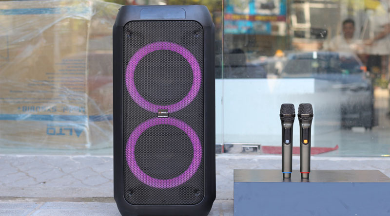 Mặt khác, cặp micro không dây hiện đại, hỗ trợ người hát cực tốt, hút âm, hát nhẹ, giọng hát ra micro mượt mà, cuốn hút.