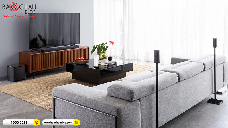 Việc kết nối với TV cũng vô cùng đơn giản chỉ bằng một dây cap duy nhất, eARC hoặc quang. Nếu muốn loa có công suất mạnh mẽ hơn, người dùng có thể ghép nối thêm với loa vệ tinh và loa siêu trầm.