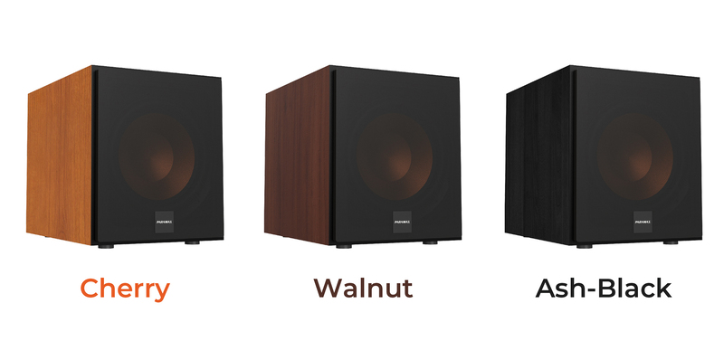 Loa siêu trầm SUB-E30 sở hữu 3 phiên bản màu hiện đại, đơn giản là Cherry (Anh đào), Walnut (Óc chó) và Ash-Black (Tro đen).