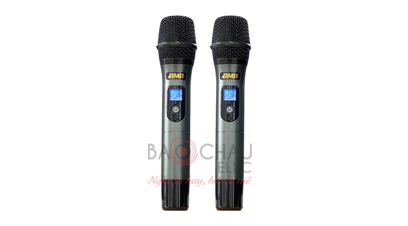 Màn hình LCD nhỏ hiển thị tần số sóng và lượng pin, 1 nút bật/tắt nguồn micro, ngoài ra còn có logo BMB màu vàng nổi bật, đuôi micro là khay chứa pin vặn mở dễ dàng.