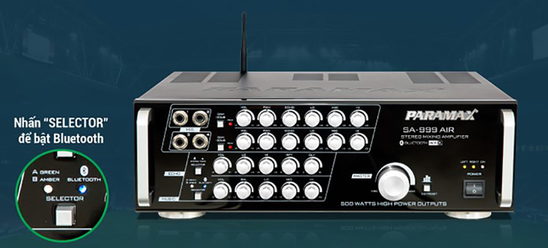 - Kích hoạt Bluetooth trên amply hoặc mixer: Bật chế độ Bluetooth Pairing để chờ ghép nối.