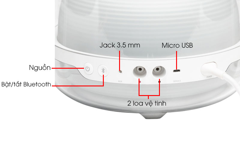 - Bước 4: Cấp nguồn, bật nút Power, đèn LED sáng báo hiệu loa đã sẵn sàng sử dụng.