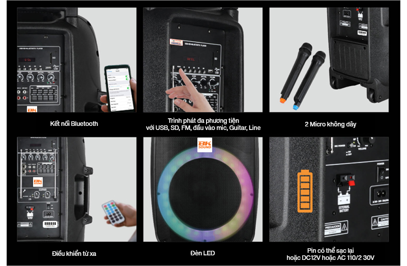 Được trang bị khả năng kết nối USB, SD, FM, Bluetooth cho Loa kéo BKSound PEQ-15 DWB có độ tương thích cao, đáp ứng nhiều nhu cầu giải trí của người dùng. Bộ micro không dây đi kèm cũng khiến người dùng ấn tượng, thiết kế chắc tay, vừa vặn. Hơn hết, micro còn hút âm tốt, không bị rè hay hú khi hát.