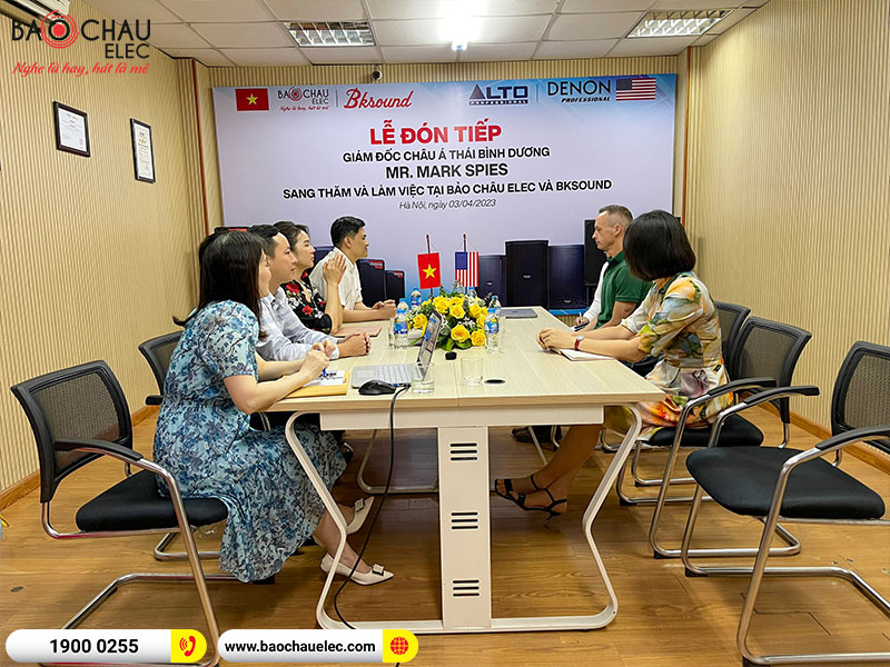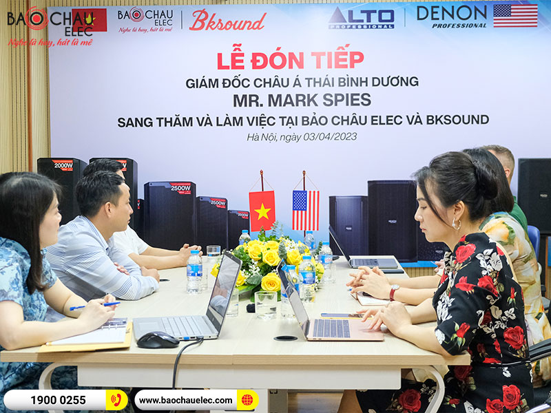 Đồng thời, ông cũng đã chia sẻ thêm về các xu hướng mới trong ngành âm thanh và kinh nghiệm hoạt động, truyền thông,.. để Bảo Châu Elec có thể áp dụng trong thời gian sắp tới. Hai bên cũng đã có chia sẻ nhất định về một số dự án tiêu biểu do Bảo Châu Elec thực hiện với các sản phẩm Alto & Denon Professional, cũng như tìm ra giải pháp về một số vấn đề còn tồn đọng để hoàn thiện từng khâu trong quá trình kinh doanh sản phẩm. Lãnh đạo Bảo Châu Elec, BKSound đã rất hài lòng với kết quả của buổi thảo luận và hy vọng sẽ có cơ hội hợp tác thêm với Alto & Denon Professional trong tương lai.
