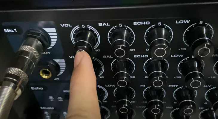 - Chỉnh âm lượng micro (VOL Micro): Đặt ở mức 11 giờ đến 1 giờ.