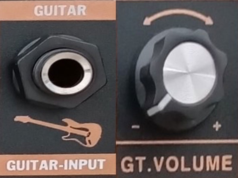 Đi kèm với đó là nút điều chỉnh âm lượng riêng cho nhạc cụ – GT Vol. Điều này giúp kiểm soát âm thanh guitar dễ dàng mà không ảnh hưởng đến các thiết bị khác như micro hay nhạc nền.