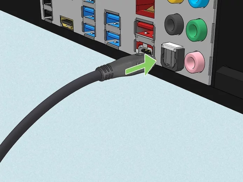 - Đầu còn lại cắm vào cổng Optical Out (hoặc SPDIF) trên máy tính hoặc card âm thanh rời.