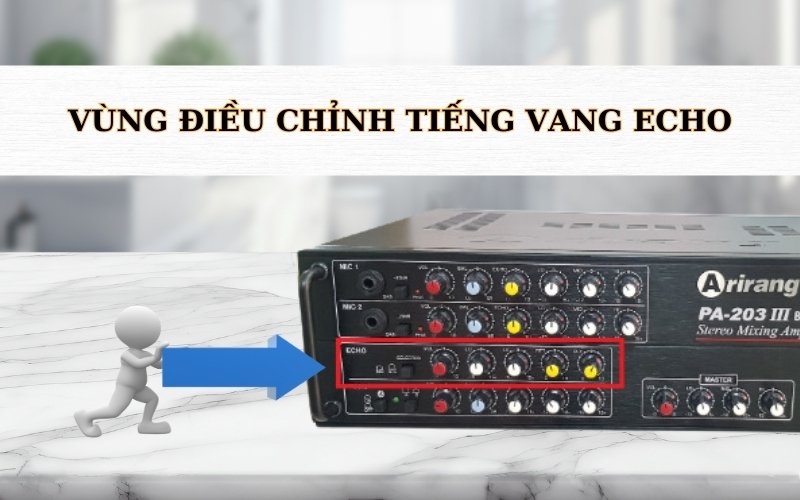 Chỉnh nút ECHO (trên dãy micro) ở mức vừa phải để giọng nói có độ mềm mại.