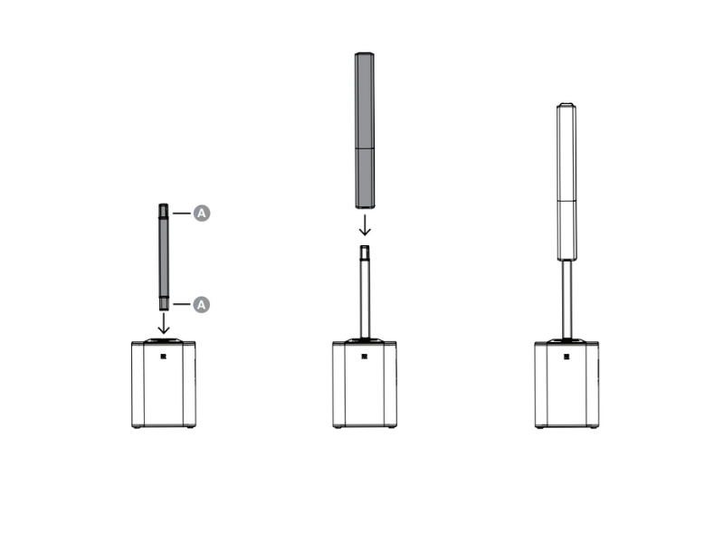 Đặt loa column array (loa thanh) lên đầu trên của pole. Đảm bảo các điểm tiếp xúc được gắn chặt và ổn định.
