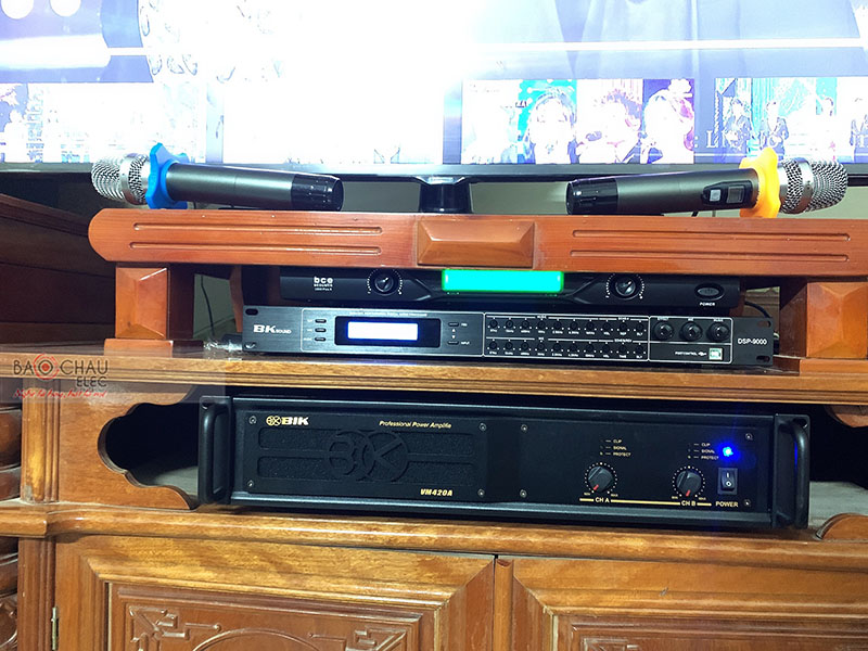 Cục đẩy công suất BIK VM420A hoạt động mạnh mẽ, mang đến nguồn năng lượng tuyệt vời cho hệ thống âm thanh. Vang số BKSound DSP-9000 giúp khuếch đại và xử lý âm thanh ra loa hay nhất cho bộ dàn karaoke sử dụng kết hợp với micro không dây BCE U900 Plus X hoạt động tuyệt vời, hát karaoke hút âm.