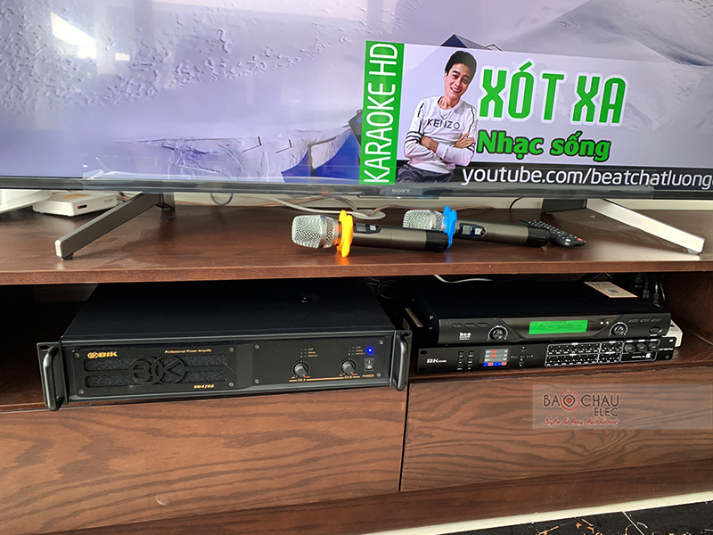 Sự kết hợp của cục đẩy công suất BIK VM620A và vang số BKSound DSP-9000 Plus giúp khuếch đại và xử lý âm thanh ra loa hay nhất cho bộ dàn karaoke sử dụng. Bộ micro không dây BCE U900 Plus thiết kế đẹp, hút âm, hát karaoke cực hay.