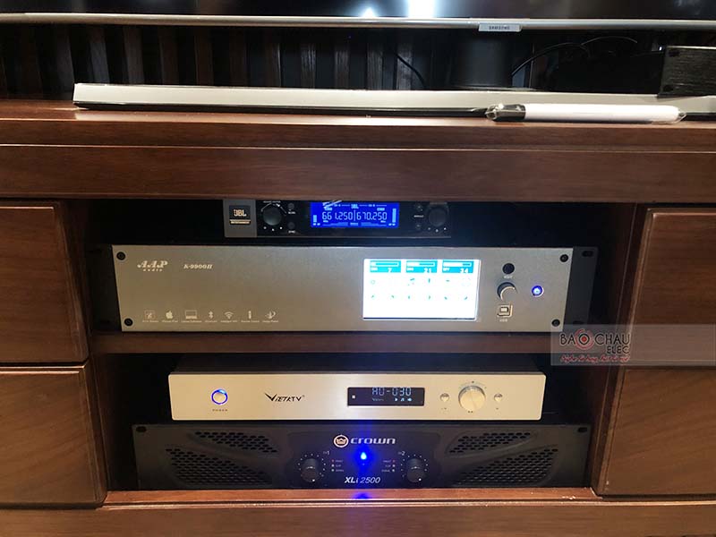 Sự kết hợp tuyệt vời của Cục đẩy công suất Crown Xli2500 kết hợp với vang số AAP K9900II đóng vai trò chống hú rít, khuếch đại và xử lý âm thanh ra loa hay nhất cho bộ dàn karaoke gia đình sử dụng.