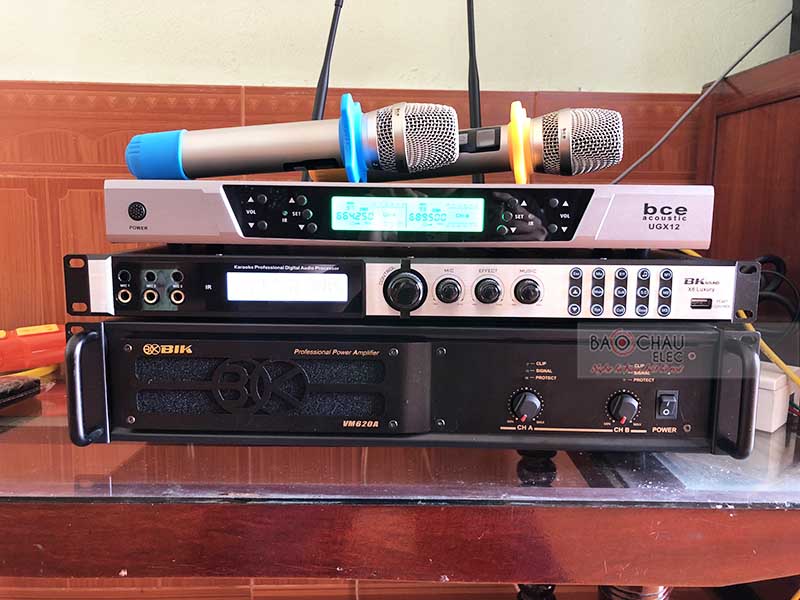 Sự kết hợp của cục đẩy công suất BIK VM620A và vang số BKSound X6 Luxury giúp khuếch đại và xử lý âm thanh ra loa hay nhất cho bộ dàn karaoke sử dụng. Cùng micro không dây BCE UGX12 thiết kế đẹp, hút âm, hát hay, hỗ trợ người hát tuyệt vời.