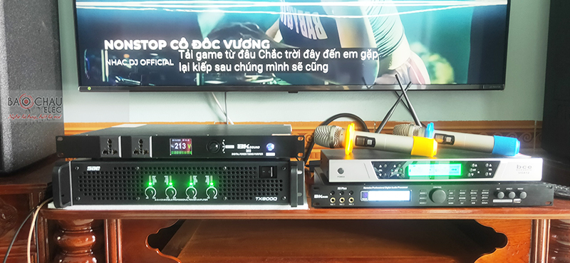 Sự kết hợp của cục đẩy công suất SAE TX800Q và vang số BKSound X5 Plus giúp khuếch đại và xử lý âm thanh ra loa hay nhất cho bộ dàn karaoke sử dụng. Tiếp theo là cặp micro không dây BCE UGX12 có độ nhạy cao, hạn chế hú rít, hát cực hay.