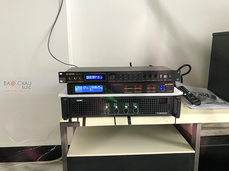 Cùng với cục đẩy công suất SAE TX800Q kết hợp vang số BIK BPR-8500 đóng vai trò chống hú rít, khuếch đại và xử lý âm thanh ra loa hay nhất cho bộ dàn karaoke gia đình sử dụng. Bộ micro không dây BIK BJ-U550 cho chất âm trong trẻo, có độ dày tạo nên sự khỏe khoắn, chắc chắn, đáp ứng mọi nhu cầu sử dụng âm nhạc.