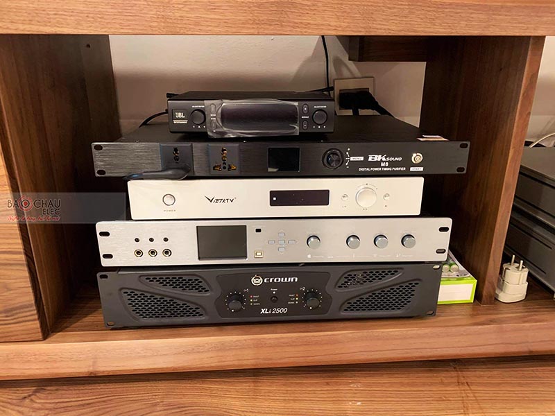 Cục đẩy công suất Crown Xli2500 chất lượng cao, có khả năng khuếch đại công suất ấn tượng, kết hợp cùng vang số cao cấp AAP K9800 xử lý âm thanh ra loa mượt mà, trong trẻo ra loa.
