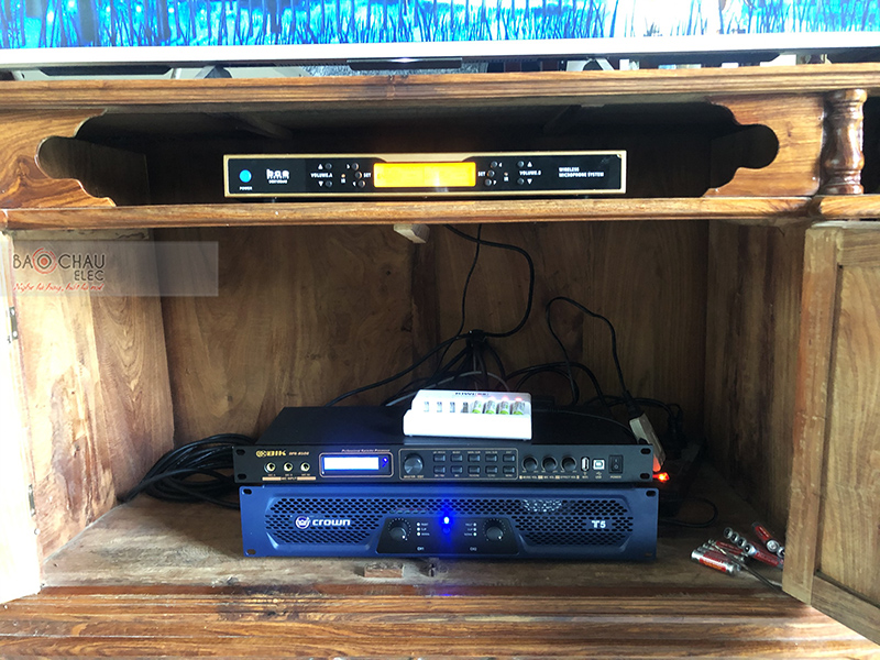 Cục đẩy công suất Crown T5 làm nhiệm vụ khuếch đại âm thanh đảm bảo công suất thêm mạnh mẽ, chân thực. Kết hợp cùng vang số BIK BPR-8500 xử lý âm thanh ra loa mượt mà, trong trẻo ra loa.