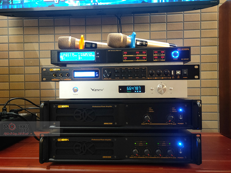 Cục đẩy công suất BIK VM820A và cục đẩy công suất BIK VM620A cho khả năng khuếch đại chất âm mạnh mẽ, sống động. Kết hợp cùng vang số BIK BPR-8500 xử lý âm thanh mượt mà, hoàn hảo ra loa.