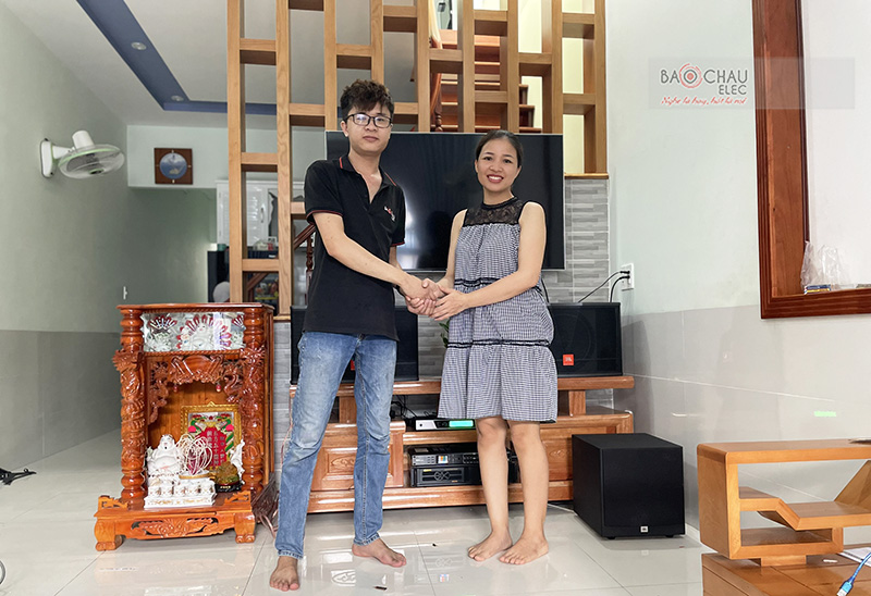 Hình ảnh bộ dàn karaoke sau khi được lắp đặt và bàn giao cho gia đình