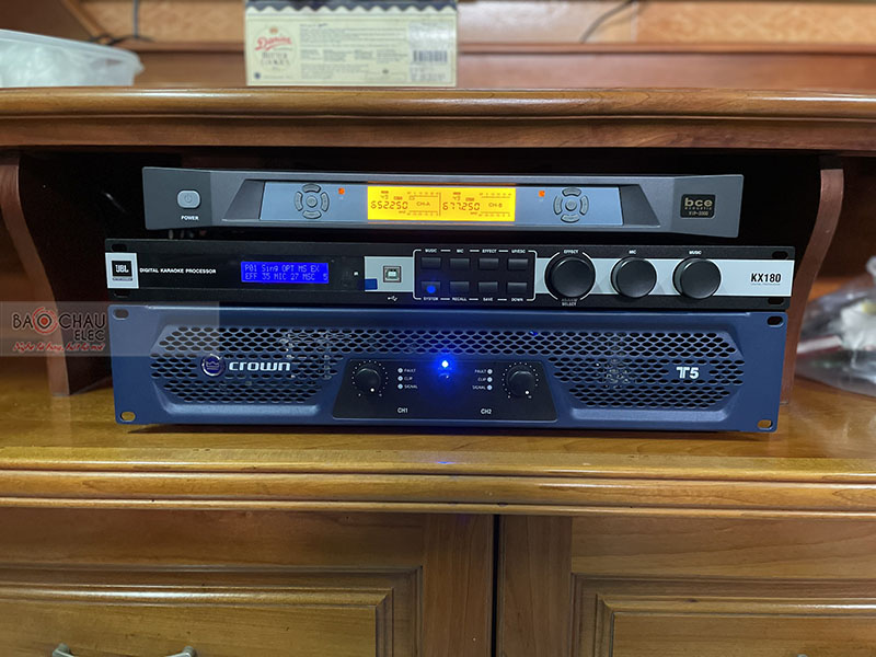 Cục đẩy công suất Crown T5 cho khả năng khuếch đại công suất ấn tượng, kết hợp cùng vang số cao cấp JBL KX180 xử lý âm thanh ra loa mượt mà, trong trẻo ra loa.