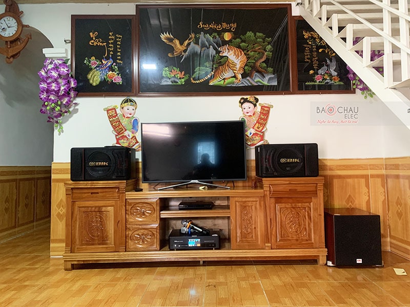 Dàn karaoke gia đình anh Phi tại Hưng Yên được phối ghép từ các thiết bị âm nhạc chính hãng của BIK, BKSound…trong tầm giá vô cùng hợp lý. Bộ dàn được phối ghép với độ tươn thích cao, đáp ứng các đầy đủ các yếu tố về thẩm mỹ và khả năng trình diễn âm nhạc.