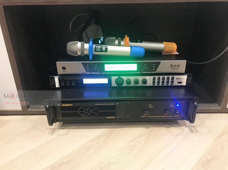 Cục đẩy công suất BIK VM620A có nhiệm vụ khuếch đại âm thanh mạnh mẽ, bùng nổ. Kết hợp với vang số karaoke BKSound X6 Luxury đóng vai trò chống hú rít, và xử lý âm thanh ra loa hay nhất.