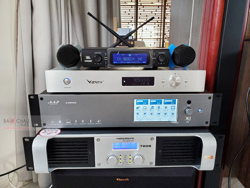 Cục đẩy công suất Famousound 7208 kết hợp với vang số AAP K9900 II giúp khuếch đại và xử lý âm thanh ra loa hay nhất cho bộ dàn karaoke sử dụng. Cùng Loa sub Klipsch SPL120 tái tạo âm trầm sâu, đầy đặn. sử dụng cho hát karaoke, nghe nhạc, xem phim.