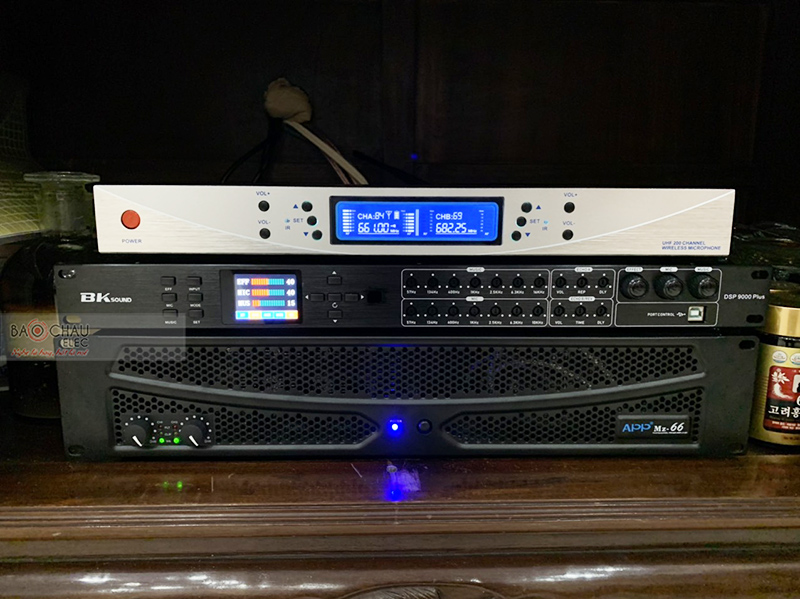 Cục đẩy công suất APP MZ-46 kết hợp với chiếc vang số hiện đại BKsound DSP-9000 Plus đóng vai trò khuếch đại âm thanh ra loa, chống hú rít tốt và xử lý âm thanh ra loa hay nhất cho bộ dàn BIK sử dụng.