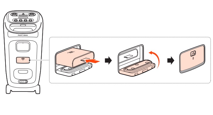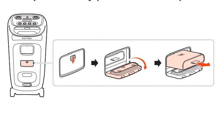 Một trong những tính năng tiện lợi khác của loa Bluetooth JBL PartyBox Stage 320 là pin có thể tháo rời. Điều này giúp bạn dễ dàng thay thế pin khi cần thiết, đảm bảo rằng loa luôn hoạt động ổn định trong thời gian dài. Để thay pin, bạn chỉ cần thực hiện các bước đơn giản sau: