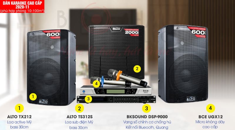 Dàn karaoke cao cấp 2020-11 chuyên dụng cho nhu cầu karaoke, sân khấu mini diện tích khoảng 20 - 80m2.