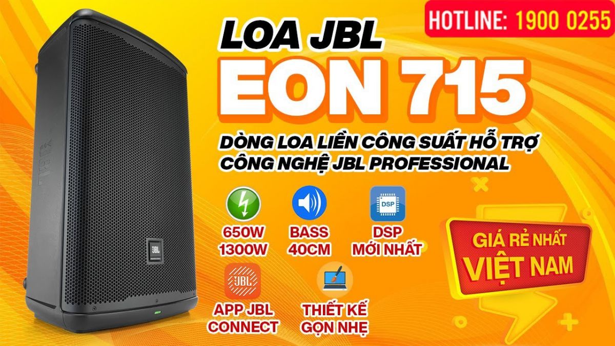 JBL EON 715 là mẫu loa karaoke di động thuộc dòng EON Series đình đám của JBL, được nhiều người yêu thích nhờ thiết kế gọn nhẹ nhưng hiệu năng mạnh mẽ. Loa sở hữu cấu tạo 2 đường tiếng với 1 bass 40cm ferrite và 1 treble 2.54cm từ NEO, mang đến âm thanh chi tiết, hài hòa.