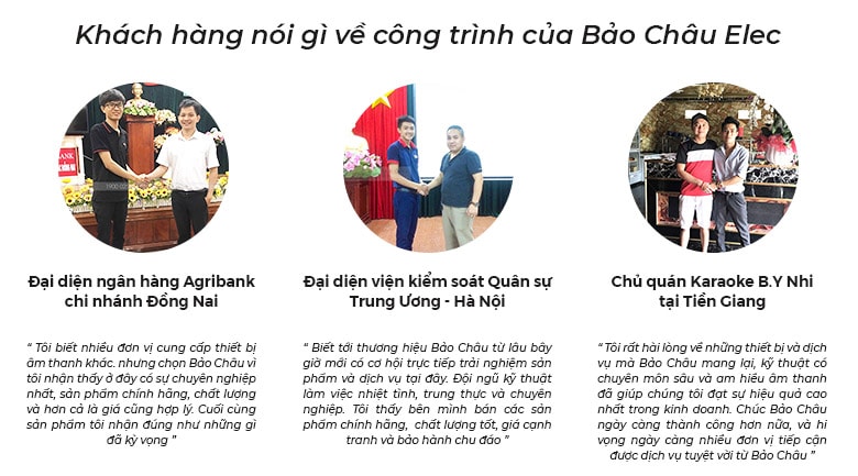 Với các đơn vị đã lựa chọn chúng tôi để làm các dự án âm thanh, phòng hát karaoke chắc chắn sẽ hài lòng về phong cách làm việc cũng như chất lượng của dịch vụ luôn đảm bảo. Bảo Châu Audio lấy chất lượng uy tín, sự chuyên nghiệp làm kim chỉ nam cho mọi hoạt động.