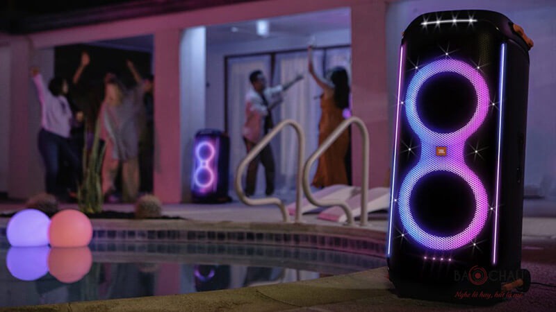Điểm nhấn nổi bật chính là hệ thống đèn LED RGB đa dạng, có thể tùy chỉnh theo nhịp nhạc, tạo hiệu ứng ánh sáng rực rỡ và thu hút mọi ánh nhìn – đúng tinh thần “party” mà JBL hướng tới.