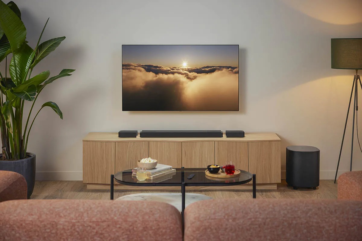 Thương hiệu JBL vốn nổi tiếng về công nghệ âm thanh dành cho rạp chiếu và phòng nghe nhạc chuyên nghiệp; ở hai phiên bản này, hãng đã mang những thành tựu đó vào không gian gia đình. Loa soundbar JBL Bar 1000 mở ra chuẩn mực của một hệ thống 7.1.4 kênh với công suất khoảng 880W, hỗ trợ Dolby Atmos và DTS:X cùng loa vệ tinh không dây và subwoofer 10″ cho trải nghiệm vòm chân thực.