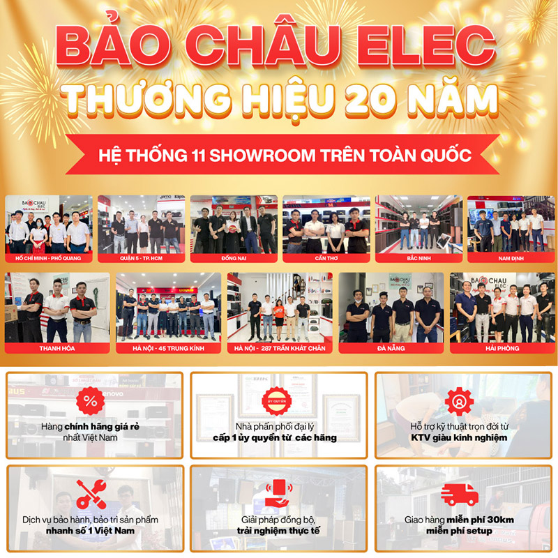 Trong thời gian mở bán, Bảo Châu Elec gửi tới quý khách hàng các khuyến mãi cực hấp dẫn trong chương trình Giảm Cực Sốc, Nhận Quà Lớn với nhiều sản phẩm thiết bị âm thanh chính hãng uy tín với giá cực cạnh tranh. Những sản phẩm cực HOT có thể kể đến như loa karaoke, bộ khuếch đại công suất, vang số, loa sub, micro, bộ dàn karaoke gia đình, dàn nghe nhạc,...