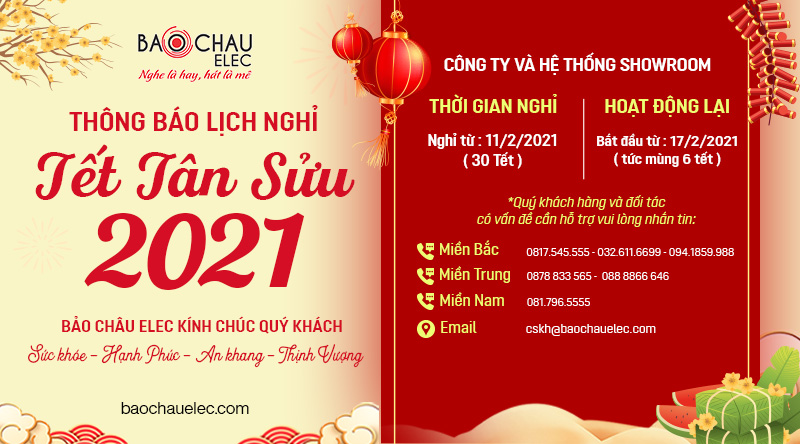 Bảo Châu Elec trân trọng thông báo về lịch nghỉ Tết Nguyên Đán 2021 của công ty và toàn hệ thống showroom như sau: